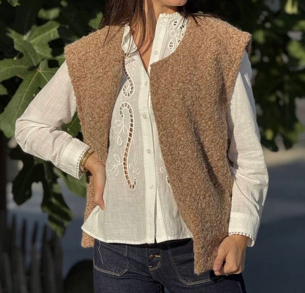 Chemise blanche col Mao avec des sublimes broderies